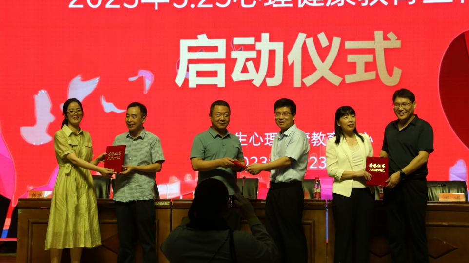 5.23日周二下午由校大学生心理健康教育中心主办、医学院承办的河南科技职业大学2023年5.25心理健康教育宣传月启动仪式在图书馆三楼报告厅隆重举行。