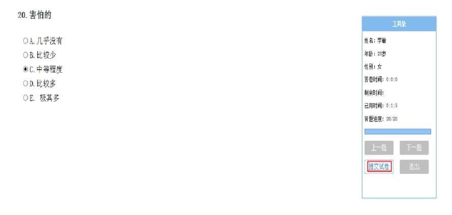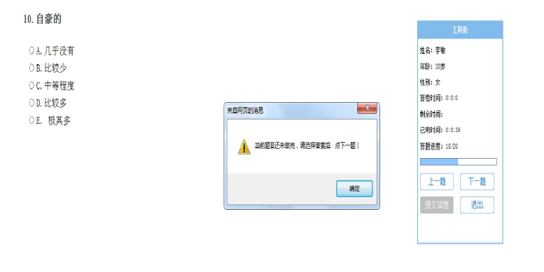 进入测评后,请点击“开始测试”,根据题目要求认真如实地作答,如下图: